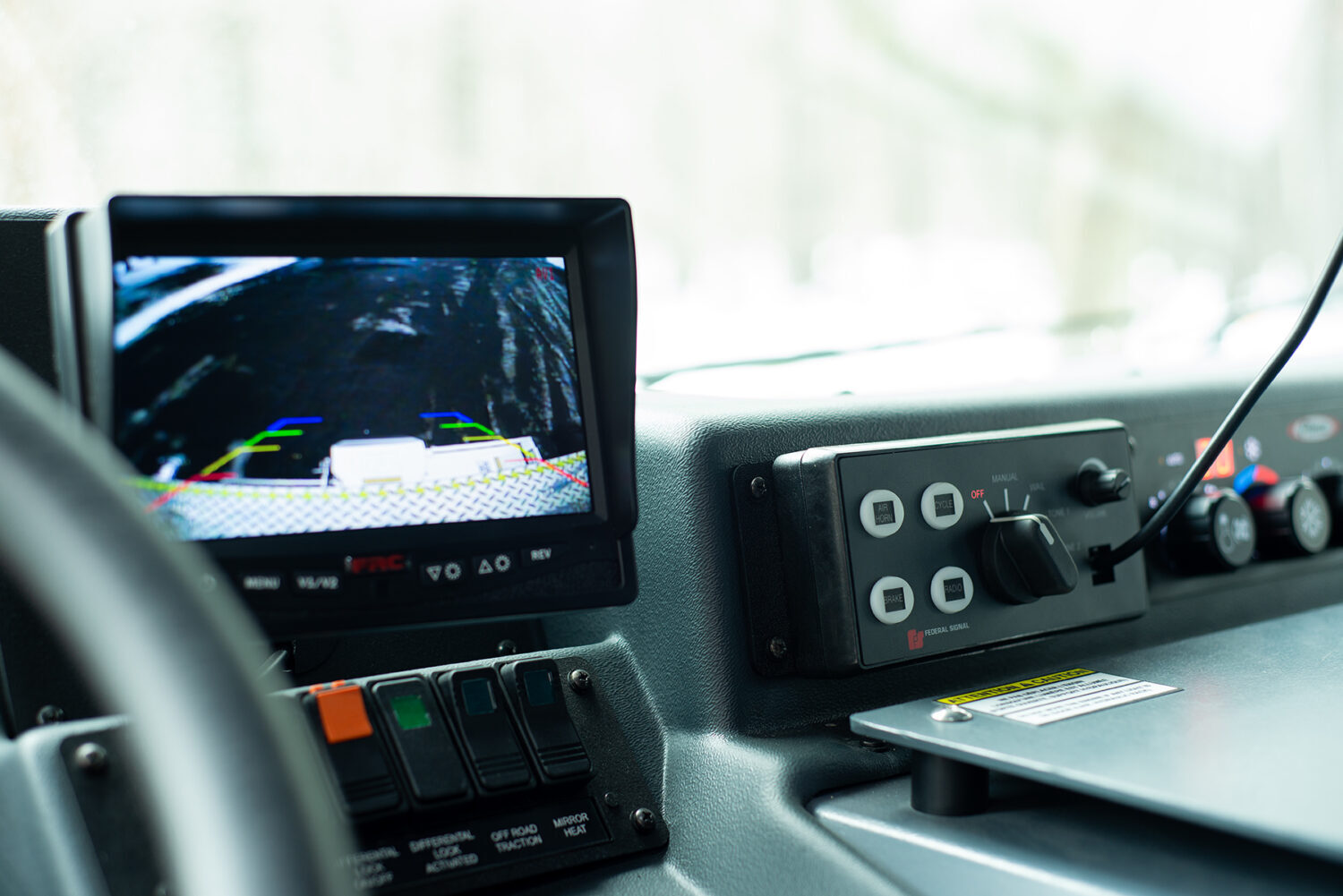 Le véhicule est également muni du système de rangement optimisé Titan™, un support hydraulique permettant le rangement sécuritaire de divers équipements à une hauteur ergonomique, contribuant à une organisation efficace du matériel et à la fluidité des opérations.