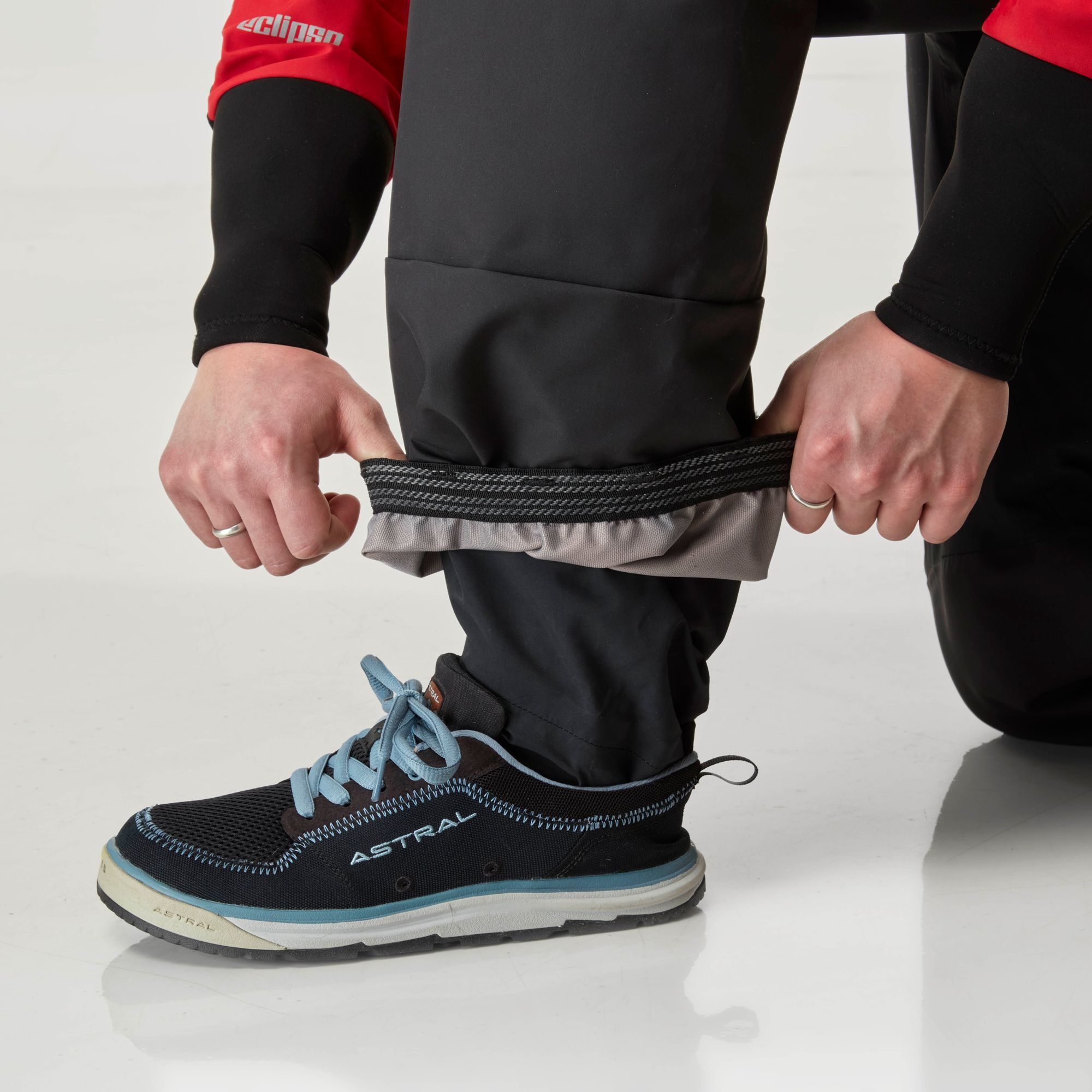 Surmanchons en néoprène Glideskin™ au cou et aux poignets protégeant les joints en latex contre l’usure et prolongeant leur durée de vie en contexte opérationnel.