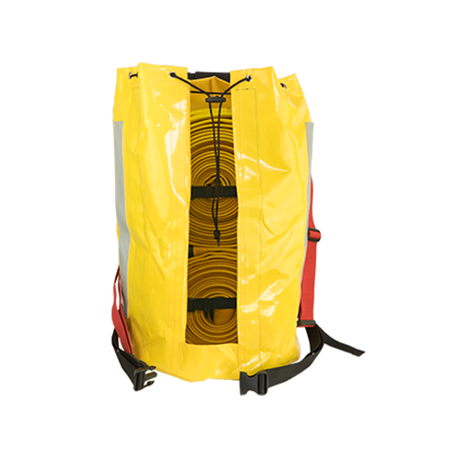 Ce sac peut contenir jusqu’à quatre tuyaux de 25 mètres. Sa conception avec ouverture frontale permet un déchargement rapide et sécurisé sans enlever le sac du dos. La toile peut se fermer entièrement, laissant aussi la possibilité de transporter d’autres éléments (vêtements, casque, nourriture).